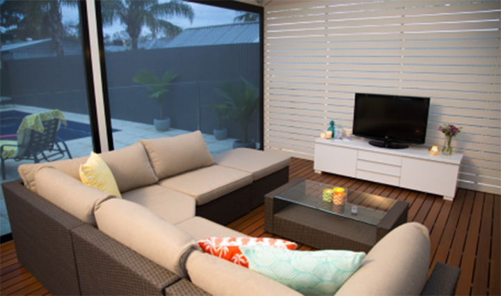 F1 Style outdoor blinds instantly create a brand new space in your home, creating a new outdoor room in moments.