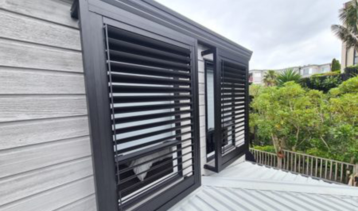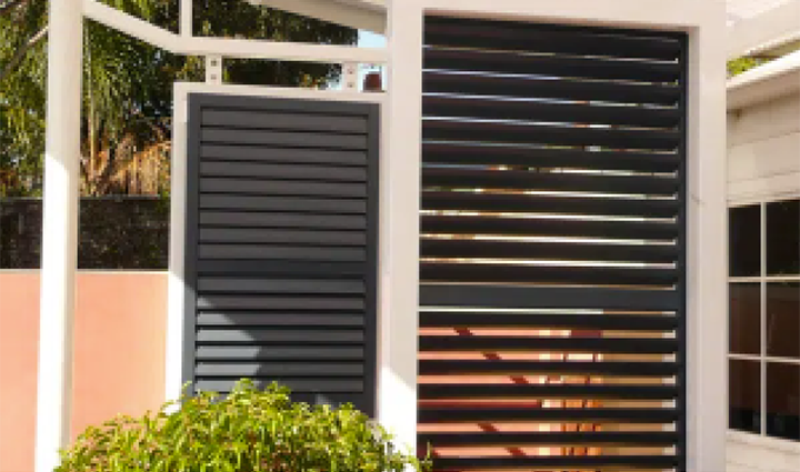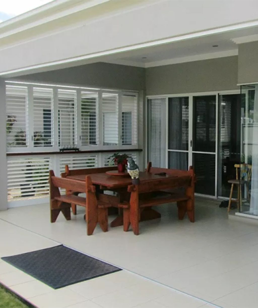 Our exterior shutters are built to last and can withstand all weather conditions. A great addition to your property, exterior shutters allow you to regulate sunlight, heat, wind and rain in your alfresco area, with adjustable louvres that protect you from the elements while enjoying your outdoor space. Exterior shutters are also great for increasing your privacy and security with lockable blades, these locks also ensure the shutters don’t blow open in high winds.